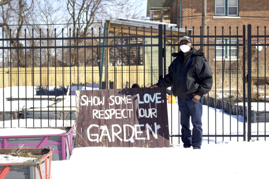 HUDA Clinic’s building manager Donald Ford stands in front of the HUDA Urban Garden, located just a block down from the clinic. Photo: Hassan Abbas/The Arab American News