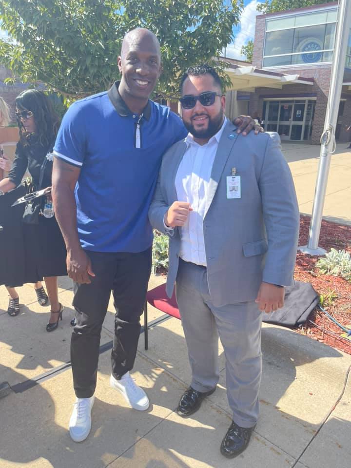 Former Detroit Pistons player Chauncey Billups with Saif Alsenad, executive director to the mayor’s office.