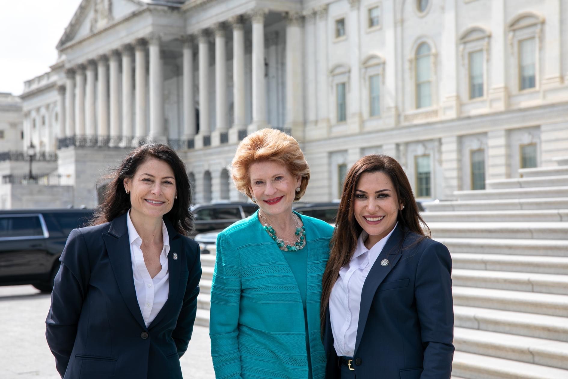 Michigan Solicitor General Fadwa Hammoud stands with Michigan Attorney General Dana Nessel and U.S. Senator Debbie Stabenow (D-MI) at the steps of the U.S. Capitol in Washington, D.C., Oct 5. Photo: Debbie Stabenow’s office.