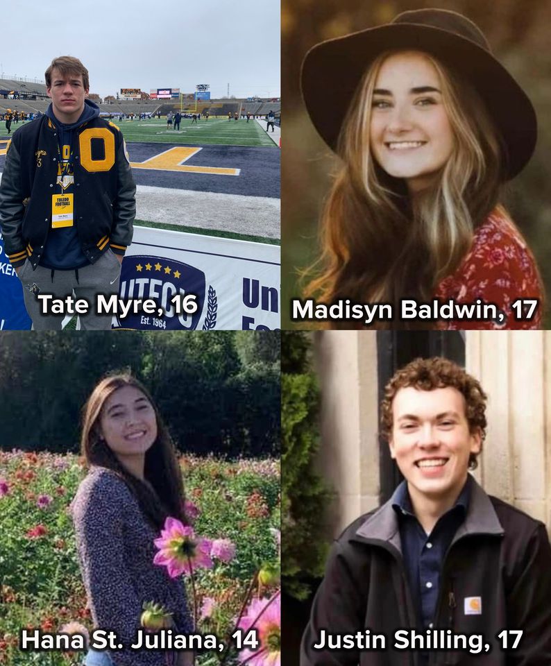 Tate Myre, 16, Madisyn Baldwin, 17, Hana St. Juliana, 14 and Justin Shilling, 17, died in the Oxford High School Shooting on Nov. 30