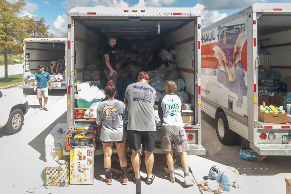 Volunteers in Hamtramck fill trucks with aid supplies for Hurricane Harvey victims – Photo courtesy of Yemeni American Leadership Association