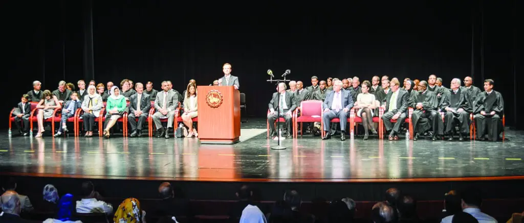 Bazzi – appointed by Gov. Snyder in May as a judge in the Wayne Country Third Circuit Court – pointed attendees to the auditorium, and judges and family members to the stage at the Ford Community and Performing Arts Center on Thursday, Sept. 7.