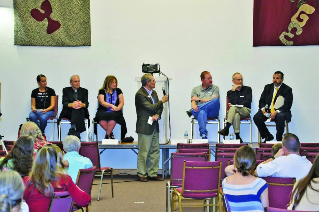 The panel consisted of Minister Andy Bratton of Kalkaska Church of Christ, Fr. Norm Dickson of Saint Mary of the Woods Catholic Church, Pam Ovshinsky of the Petoskey Temple B’nai Israel, Scott Blair of the Grand Traverse Humanists, Cecelia LaPointe from Red Circle Consulting and Detroit-based attorney Tim Attalla.Steve Spreitzer, president of the Michigan Roundtable for Diversity and Inclusion, moderated the event