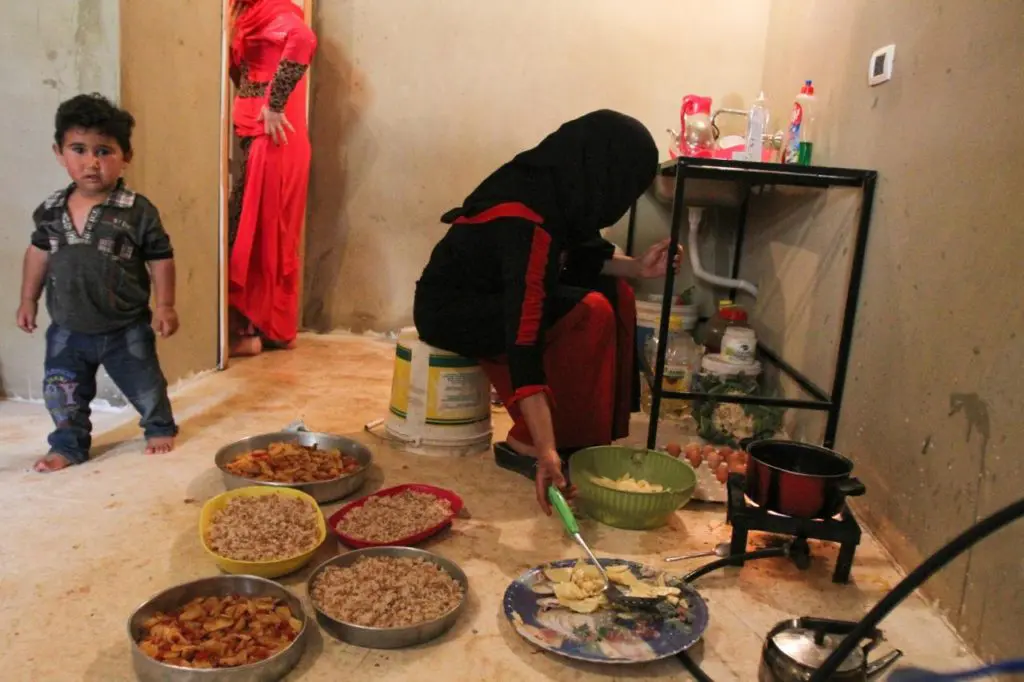 A Syrian woman sits as she cooks in Deir Nbouh, northern Lebanon, September 29, 2017. Picture taken September 29/REUTERS
