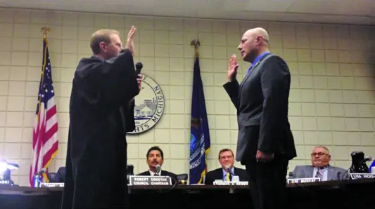 “To that description I’ve added restore public confidence in elected officials,” he said. “My outstanding staff and I will provide more transparency, greater accessibility and more communication to our residents.”