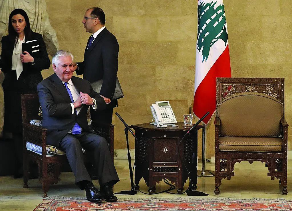Tillerson’s visit, the first by a U.S. secretary of state to Lebanon since 2014, got off to an awkward start as he waited five minutes in Baabda Palace for his meeting with President Michel Aoun, a Hezbollah ally.