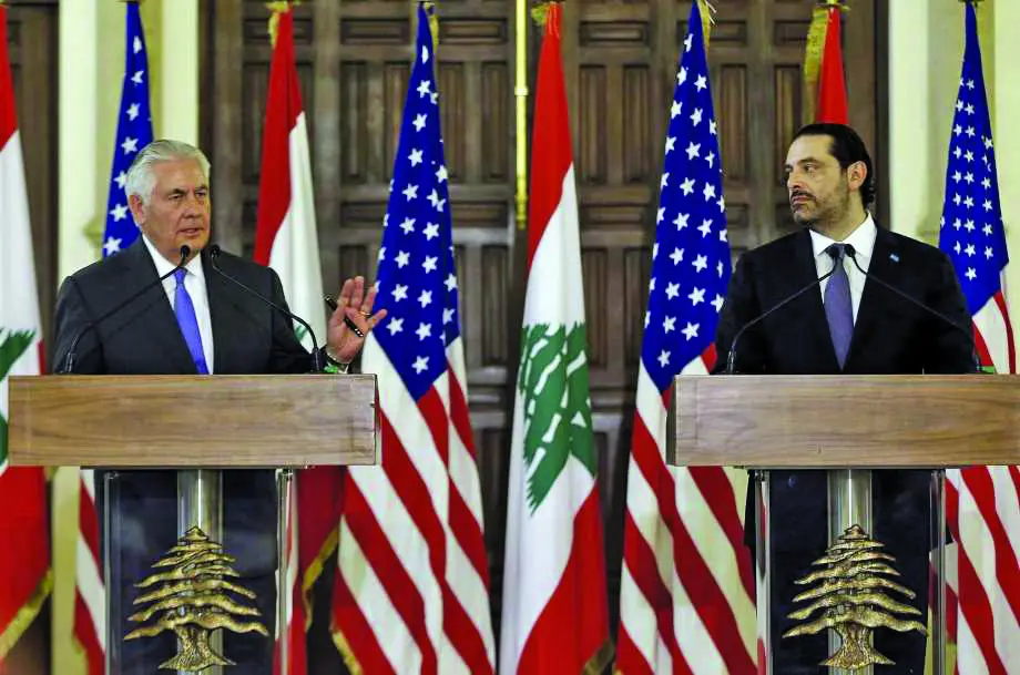 Tillerson urged Lebanese leaders to uphold the country’s commitment to staying out of regional conflicts.