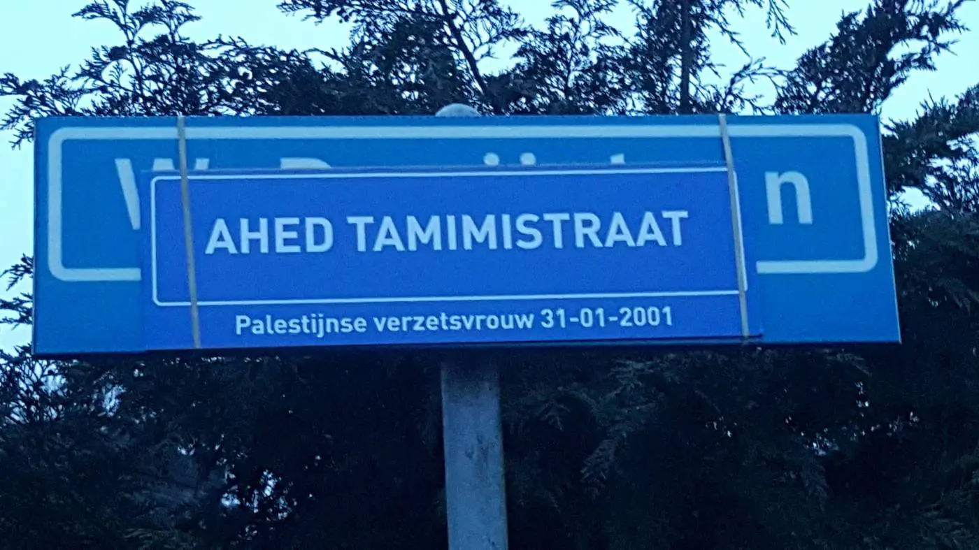 Activists in the Netherlands changed main street names in 13 Dutch cities on 23 March, placing placards that read “Ahed Tamimi street.”