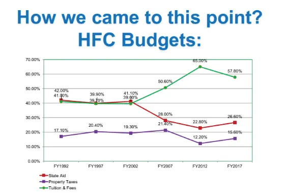 “Tuition and fees become high, reaching 60 percent (of total budget) in 2012,” Kavalhuna said. “We have almost no control for state aid; we’ve been fighting (pushing) to get more state funding.”