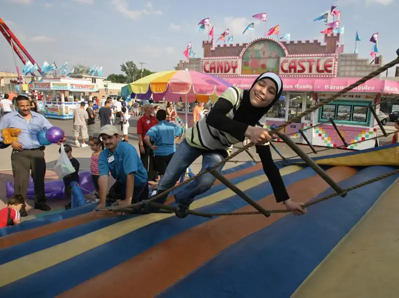 A girl climbs a ladder at the 2010 Arab International Festival in Dearborn