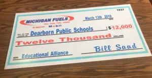 DEARBORN – On Wednesday, March 13, Dearborn Public Schools received a $12,000 donation from Trenton-based Michigan Fuels.