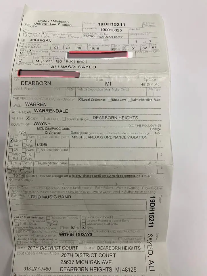 On Friday night Dearborn Heights residents complained that the festival was too loud and the police talked to Sayed about it. On Saturday at 10:05 p.m., police said that there were more complaints from the people and they told Sayed they were there to shut it down.