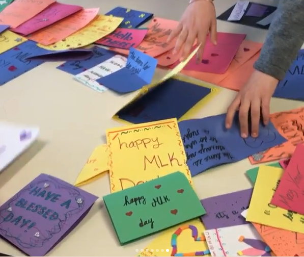Along with the guest speakers who honored Dr. King and spoke of the importance of the historic day, people gathered to make cards for senior citizens and blankets for foster care children.