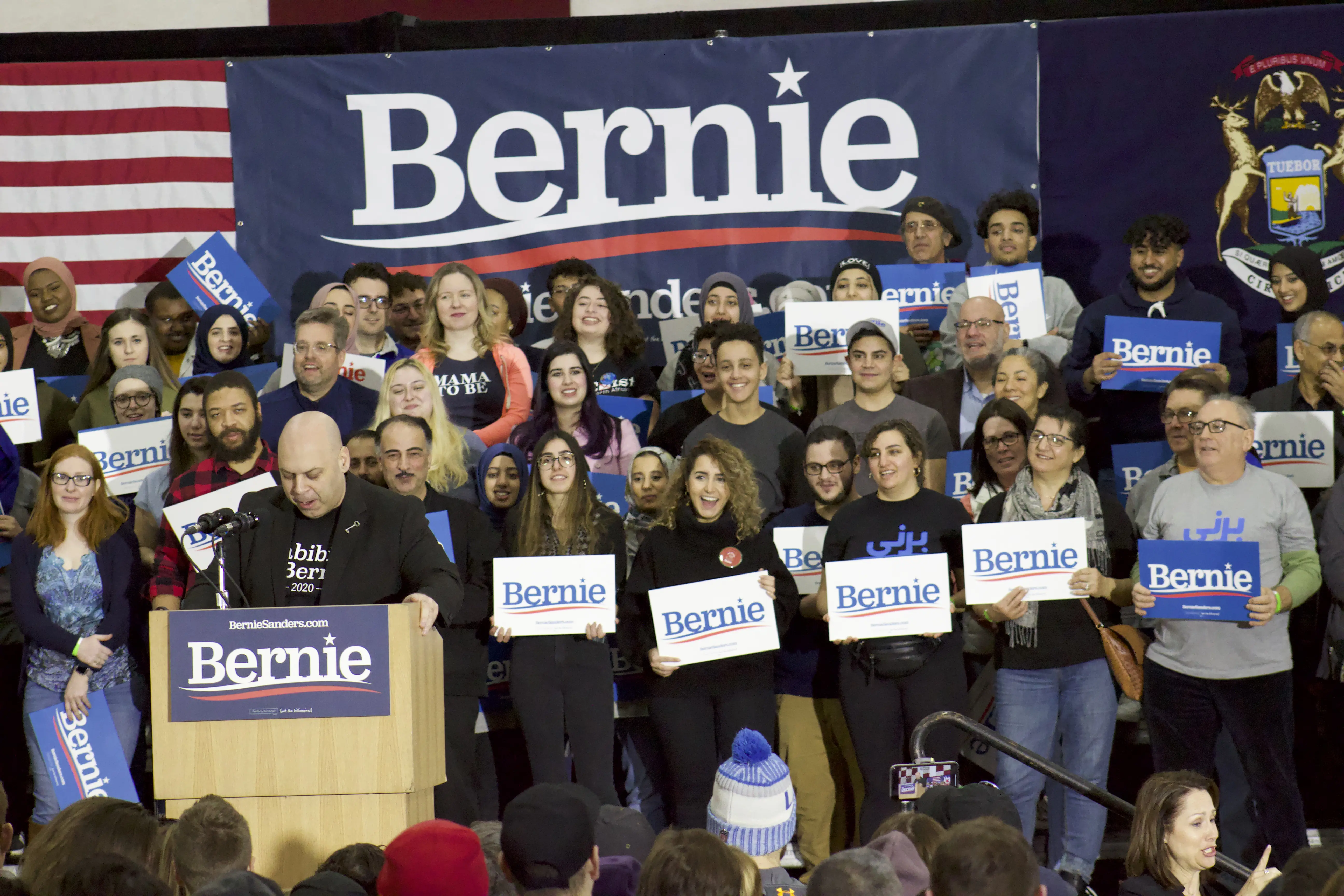 DEARBORN – As electoral efforts ramp up in Michigan ahead of the March 10 primaries, 2020 Democratic presidential candidate Bernie Sanders’ campaign organized key stops in the state over the weekend. In Dearborn’s south-end on Saturday, “Amo Bernie”, as he is affectionately known amongst his Arab American supporters, spoke to an energized crowd of supporters at Salina Intermediate School.