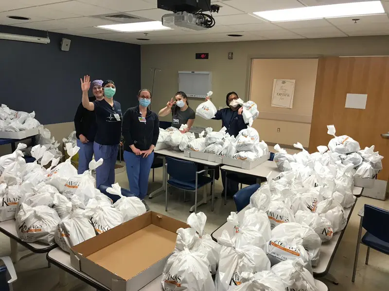 “Because nurses, respiratory therapists and doctors in the ICU had to get out of isolation, take off PPE and then get lunch, this created a real inconvenience. I knew meals had to be provided to these workers so they could stay in the ICU or conference room, have lunch and go back to work.”