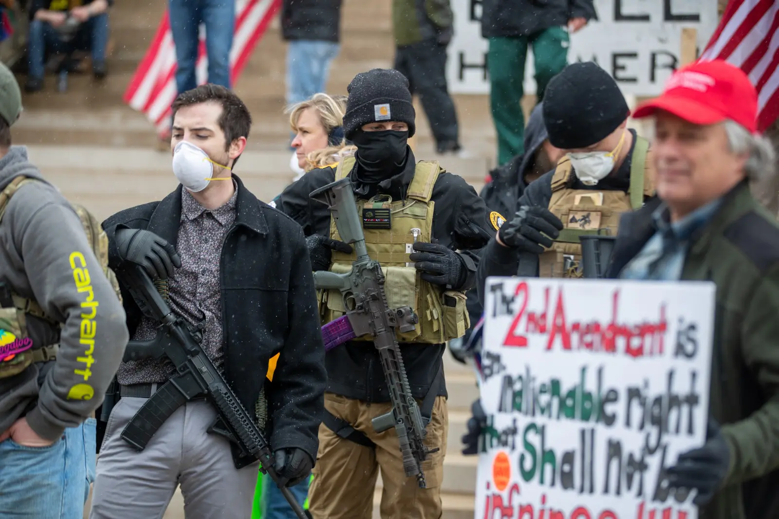 Many were in violation of the order themselves. Though a large number of protesters chose to rally out of their vehicles, an estimated 100 to 150 protesters could be seen on the capitol’s lawn, some armed and standing shoulder to shoulder in groups, often with no face protection. The state prohibited gathering of more than 50 people as early as mid-March once the outbreak of the coronavirus became a terrifying reality in Michigan.