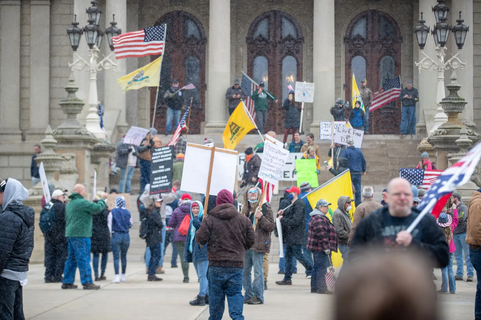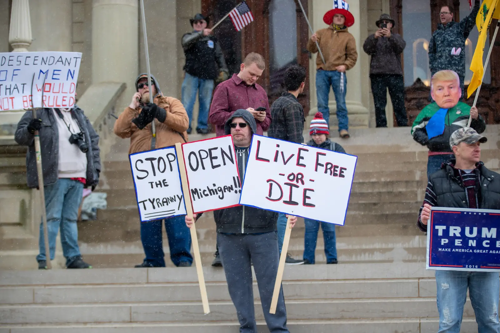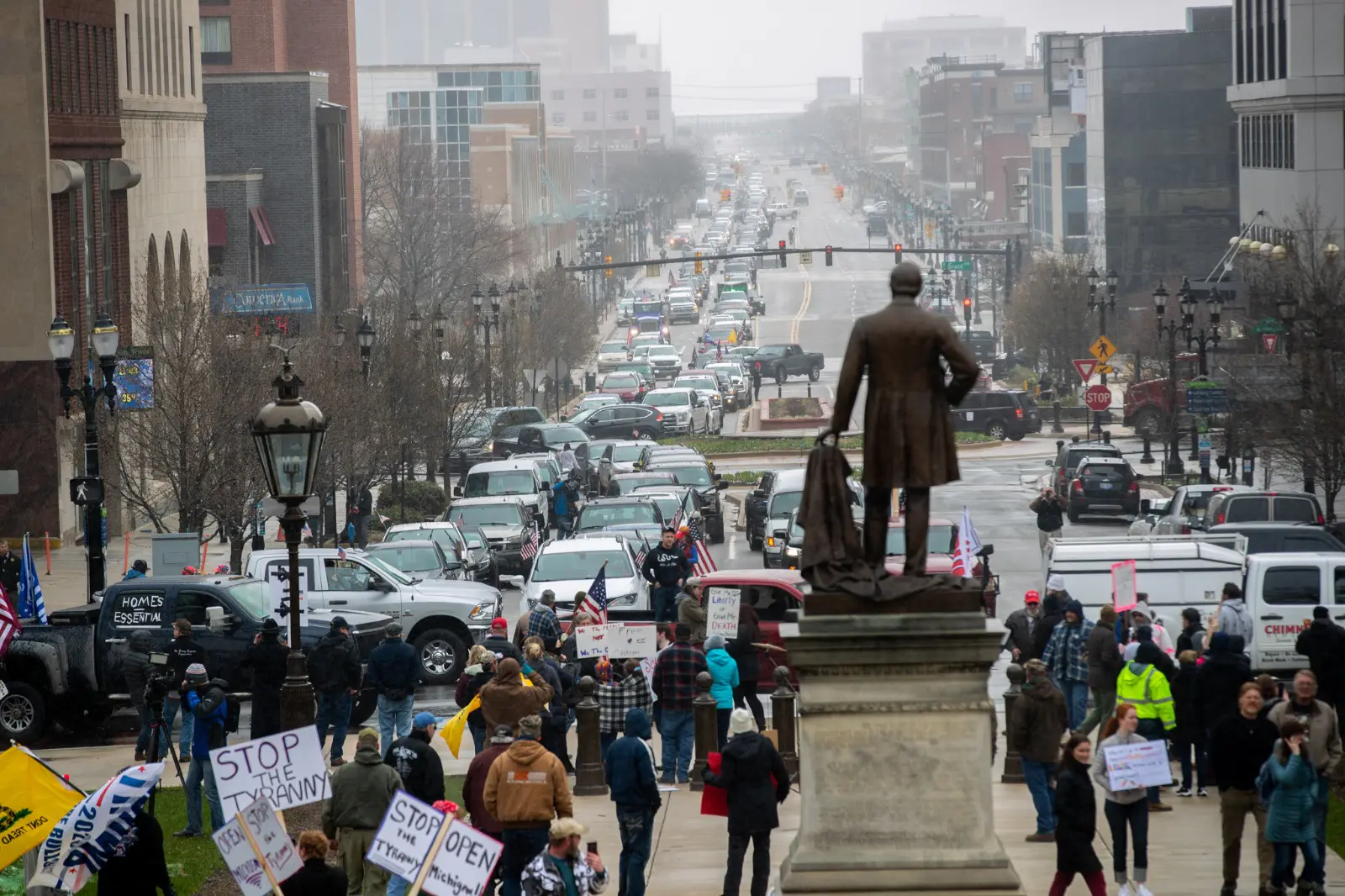 LANSING — By Wednesday afternoon, news outlets and social media accounts were buzzing with images and video of the state’s capitol building in Lansing, where thousands of right-wing, pro-Trump protesters converged against Michigan’s now extended “stay home” executive order.