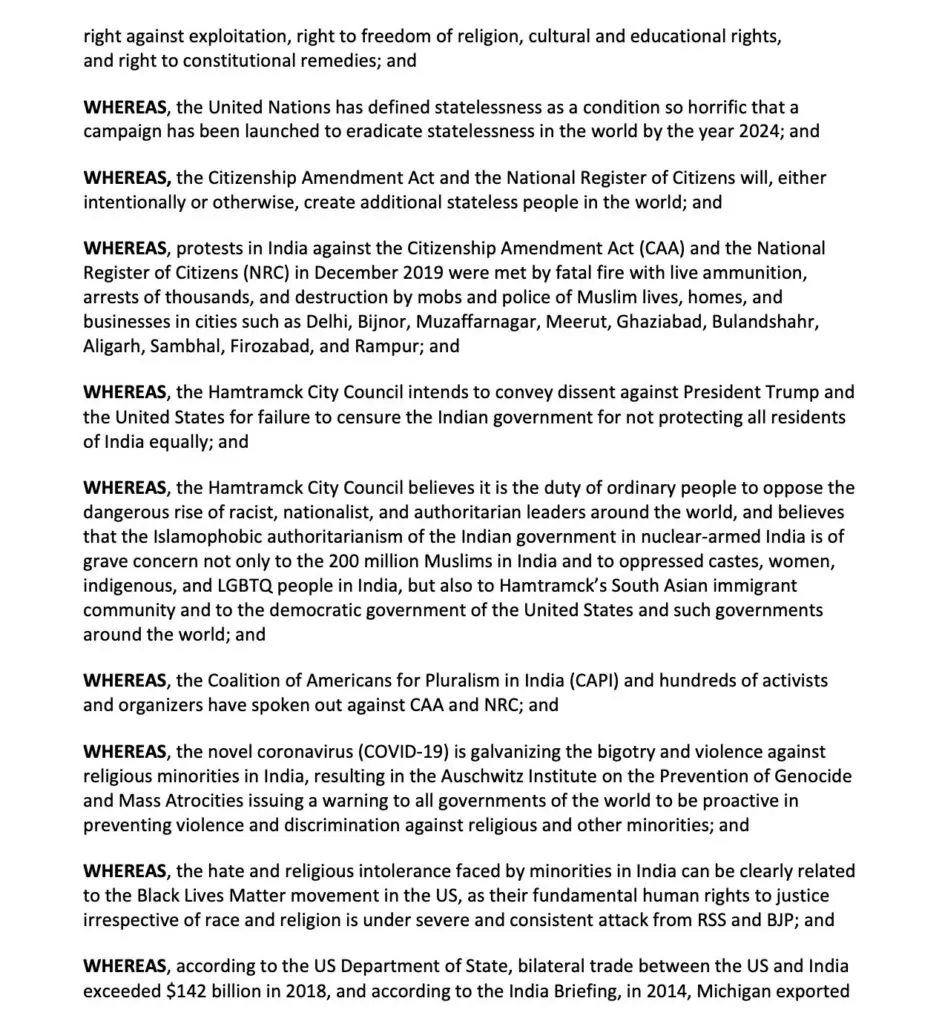 “This resolution brings awareness about the oppressed state of religious minorities and Dalits in India and helps contain the spread of Hindutva ideology here in Michigan and USA.”