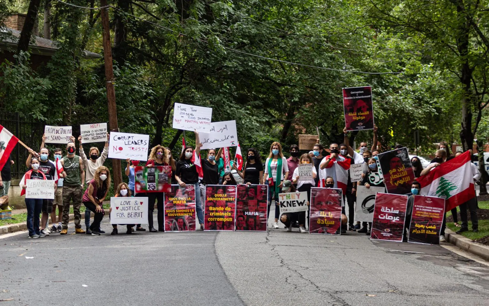 WASHINGTON, D.C. — Between 50 and 60 individuals from the Lebanese diaspora gathered in front of Lebanon’s Embassy in Washington, D.C. on Sunday afternoon. They demonstrated to show solidarity with, and demand justice for, the victims of the Beirut blast.