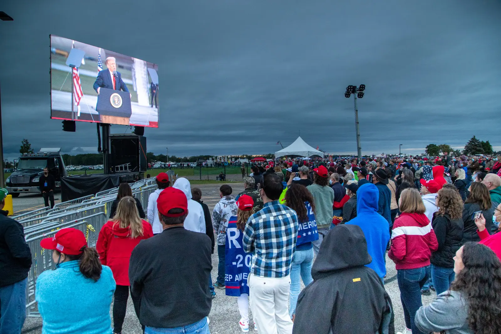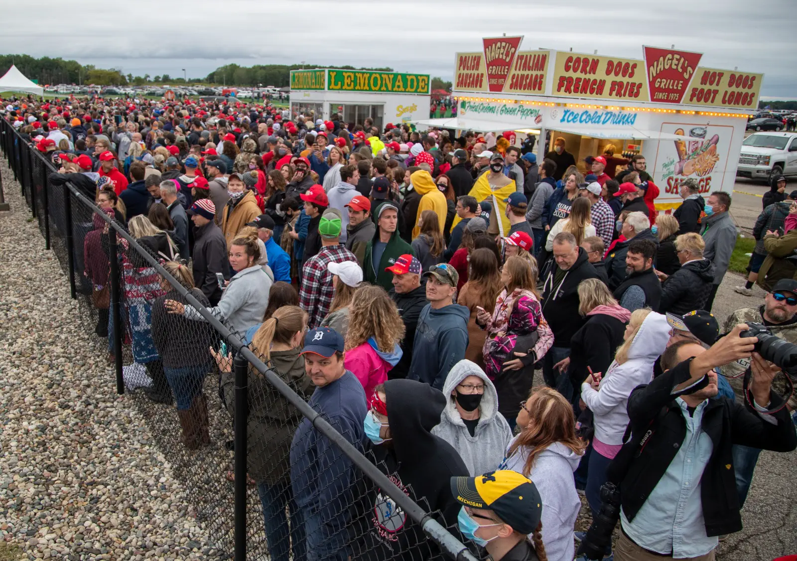The Arab American News correspondent Abbas Al Haj-Ahmed was at the rally on Thursday. Many of thousands of Trump supporters appeared mask-less and did not appear to observe well-established social distancing recommendations.