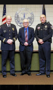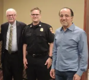 Retired Police Chief Lee Gavin, Mayor Dan Paletko and current Police Chief Mark Meyers