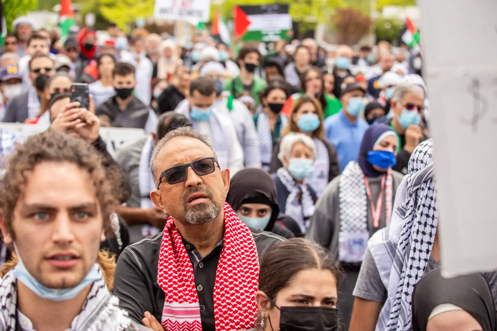 Above: People gather for Palestine in Dearborn, marching through neighborhoods and main streets, Saturday, May 15. Photo: Rasha Almulaiki/The Arab American News