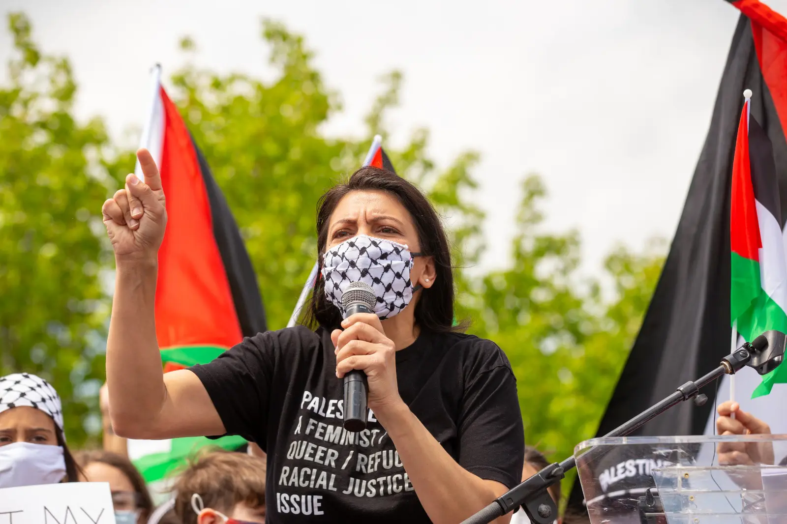 U.S. Rep. Rashida Tlaib (D-Detroit) joined a line up of local speakers, including The Arab American News Publisher Osama Siblani, to bring awareness to Palestine and the apartheid happening that she has heard crudely compared by the opposition to “mowing the lawn.”