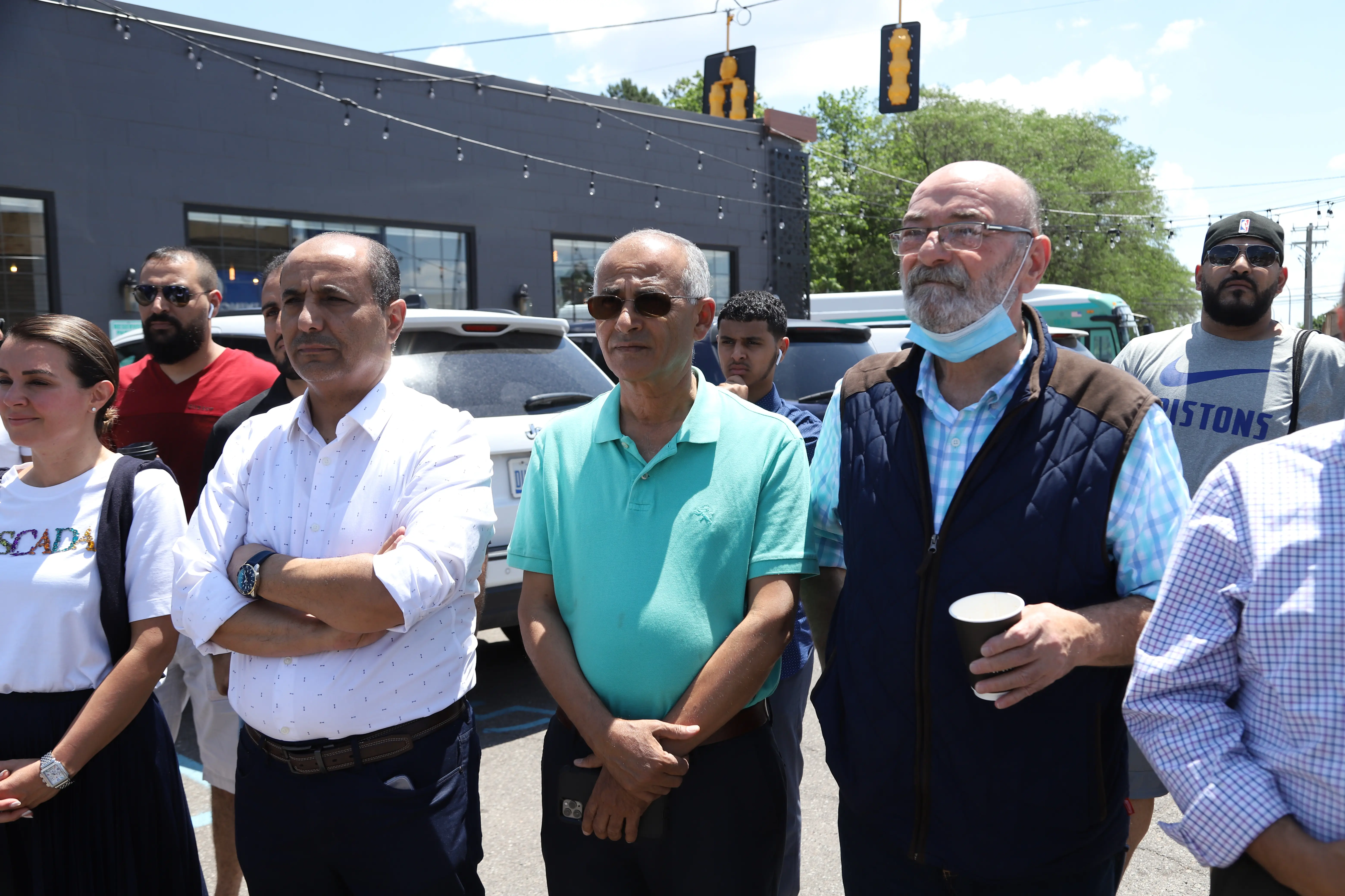 Arab American community leaders and Wayne County and Dearborn officials gathered at Haraz Coffee last Sunday, to promote unity and address divisions sparked by the recent events. Nasser stood with the event’s participants.