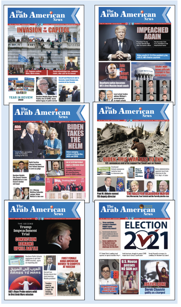 In 2021 there was a change of the guard in Washington, D.C., but this change was preceded by an unprecedented insurrection on Capitol Hill and a second impeachment of former President Trump. Arab Americans and Muslims made headlines on the national level with the first Muslim appointed to the federal bench and the U.S. Supreme Court heard a case on FBI surveillance of Muslims. Michigan’s Solicitor General Fadwa Hammoud made history in Washington D.C.