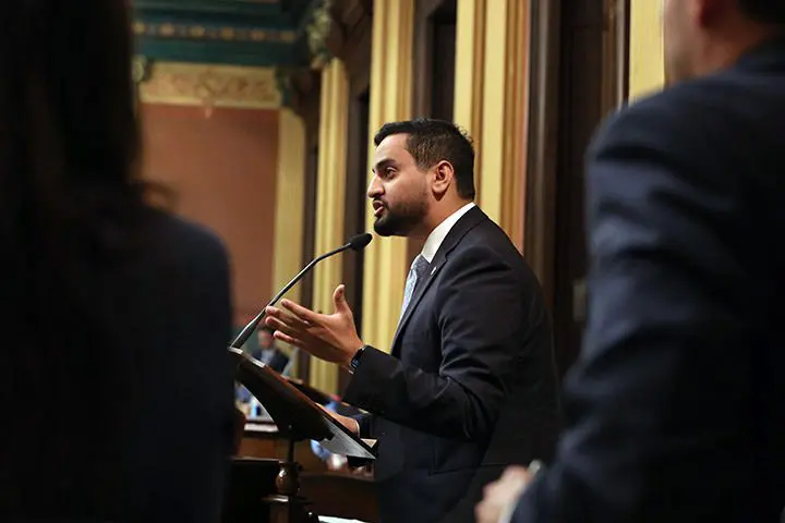 State Rep. Abraham Aiyash (D-Hamtramck) speaks on the House floor, June 30, 2021. Photo: Michigan House Democrats