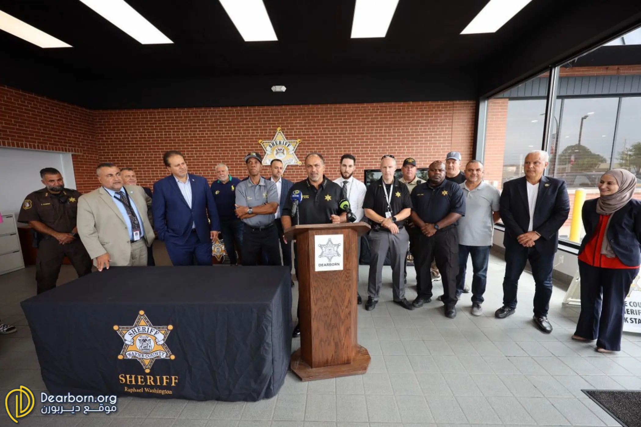 The Sheriff’s Office held an unveiling for the new station, attended by several local officials and area law enforcement partners. Speakers included Washington, Dearborn Mayor Hammoud, Undersheriff Jaafar, Wayne County Director of Homeland Security Sam Jaafar, Wayne County Commissioner Sam Beydoun and more.