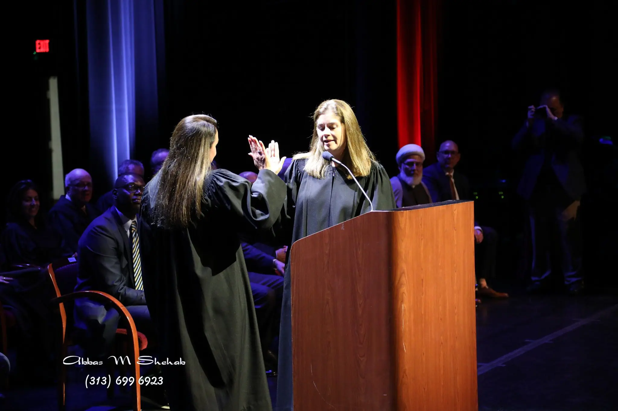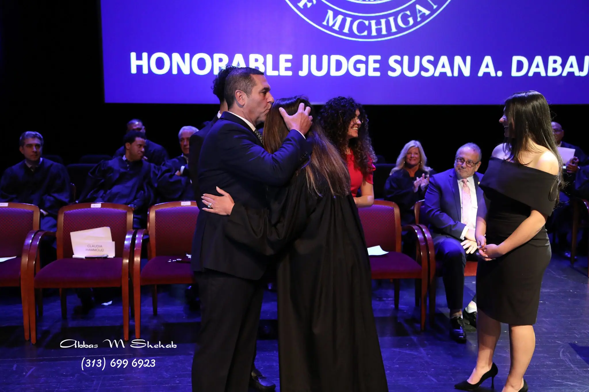 Dabaja’s children and husband, Majid Hammoud, presented her with her robe and her daughters assisted with placing it on her. The presentation of the robe and gavel affirmed her new judicial role.