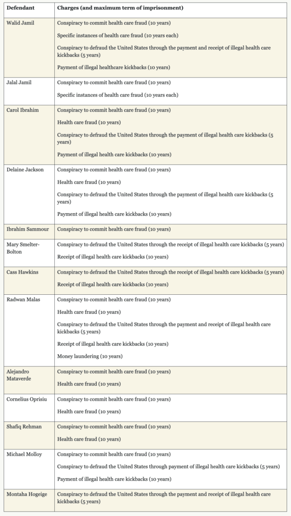 Employed by the Jamil home health agencies, Carol Ibrahim, 45, an Oakland County resident, and Delaine Jackson, 48, a Wayne County resident, allegedly illegally paid patient recruiters and submitted fraudulent claims to Medicare. According to reports, Ibrahim is also an alleged straw owner of one of the Jamil home health agencies.