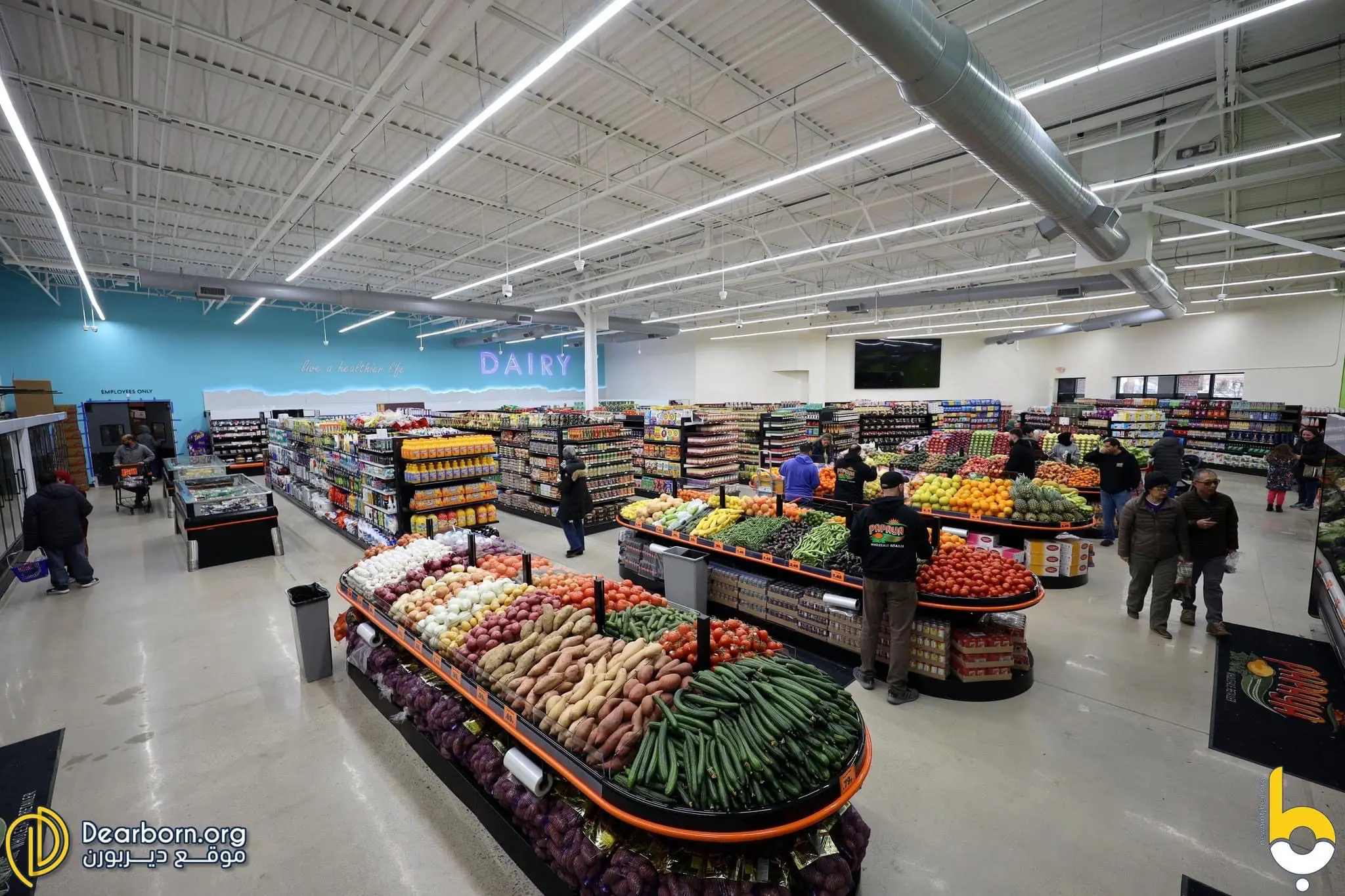 The popular supermarket offers fresh produce, a bakery, a kitchen that serves meat and other various Middle Eastern groceries. The Canton location offers all of these services as well.