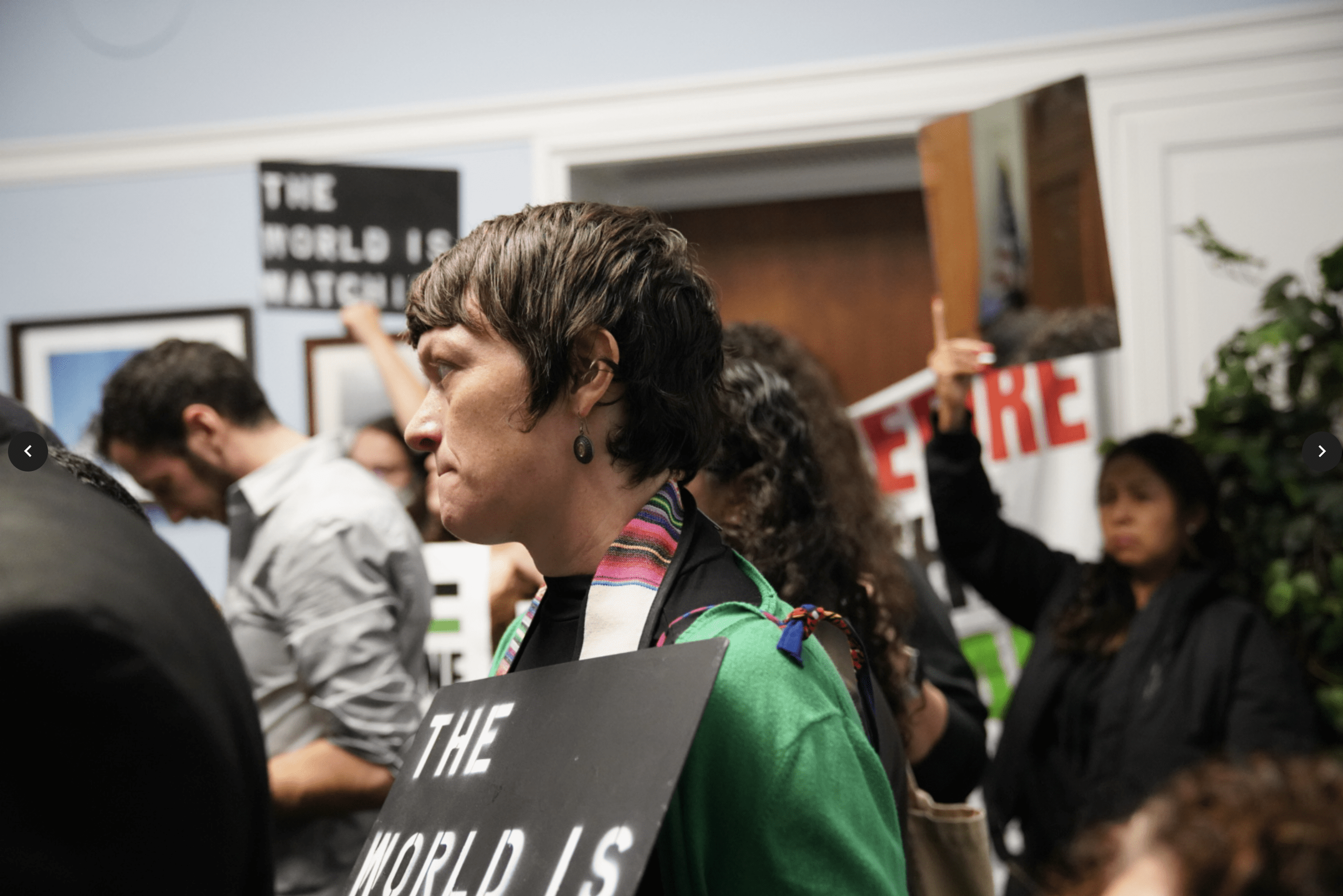 Tuesday’s pray-in follows another sit-in led by the Adalah Justice Project last Friday at Rep. Ro Khanna’s office. During the four-hour disruption that went viral, Rep. Khanna refused to make any public calls for a ceasefire despite more than 4,300 having already been killed at that time, stating that he had “no redline.” The action came just after Rep. Khanna’s political director resigned over Khanna’s resistance to signing the resolution for a ceasefire. His resignation is part of a mounting uprising from congressional staffers as members are reluctant to defy the Biden administration and publicly support a ceasefire. On Thursday, more than 400 staffers on Capitol Hill urged their bosses to call for a ceasefire in an anonymous letter.