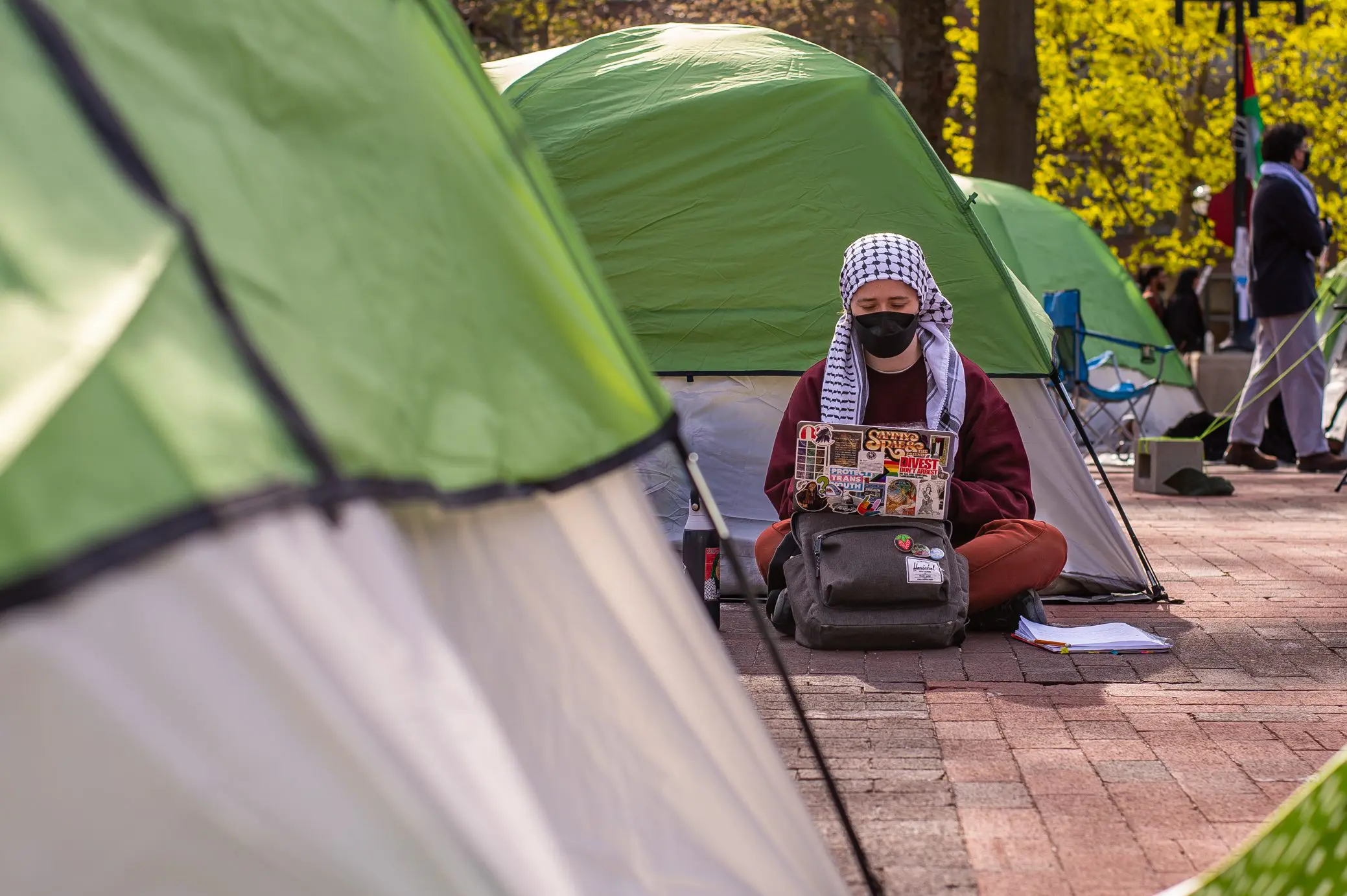 The goal of the encampment is divestment and part of the way it is meant to achieve that is through disrupting business as usual at the university. Disturbing the pathways that people go through the Diag, when they come to visit for graduation, and when they come to visit campus for incoming students. They (will) see our banners and our messaging that we demand divestment.