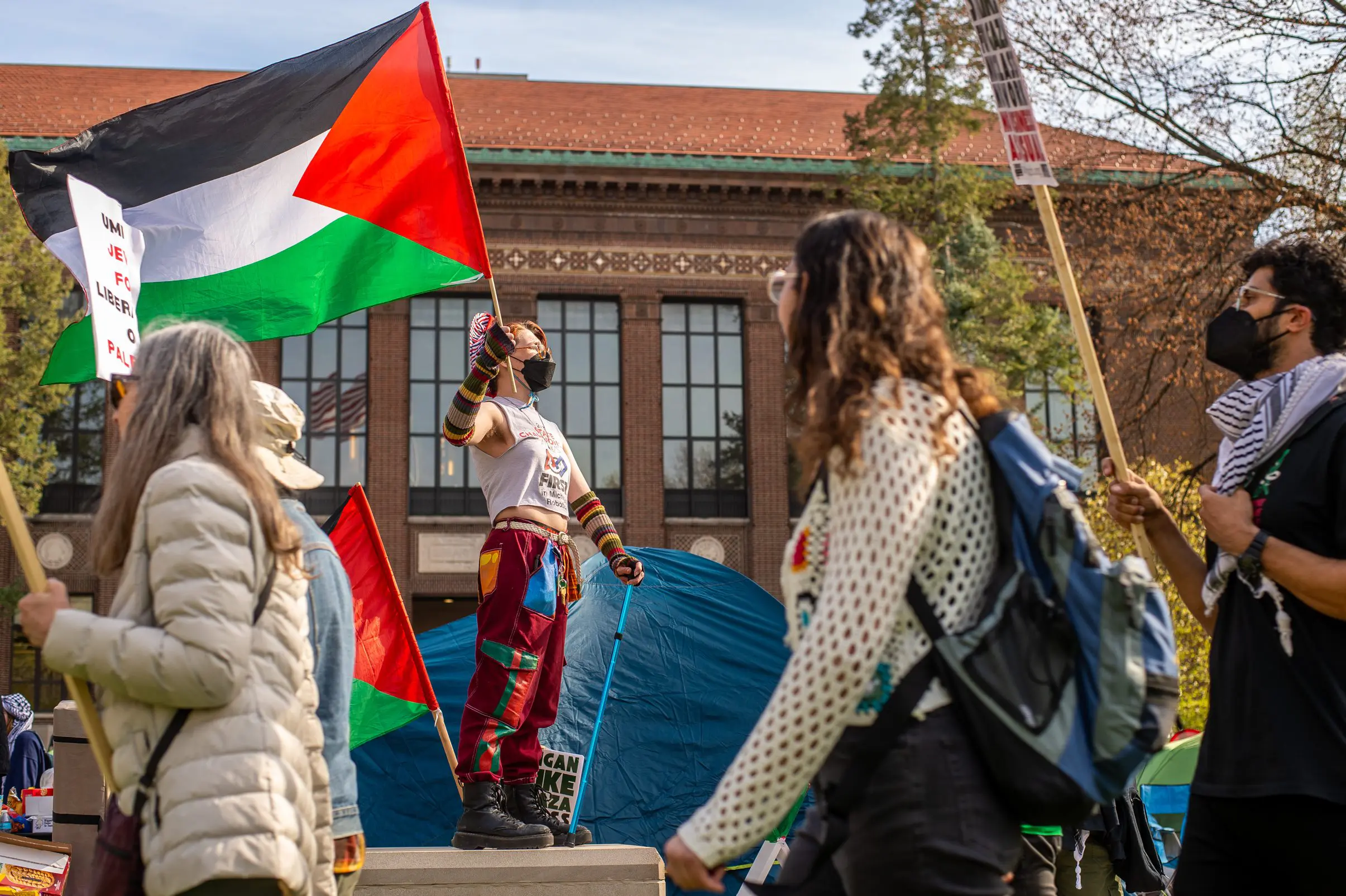 The encampment is a historical mode of protest that (students) did at the University of Michigan in the ’80s during the anti-apartheid movement in South Africa. As we have seen in national news, lots of colleges around the country are staging their own encampments, all in unison, demanding their respective universities to divest from companies complicit in Israeli war crimes, Israeli universities and discontinuing those partnerships.