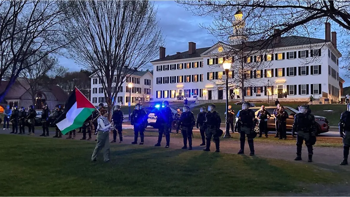 Several protests on Dartmouth College’s campus have sparked, with a more recent one leading to 90 arrests, including students, faculty and community members. The university, located in Hanover, New Hampshire, has seen student protesters’ presence grow on campus to voice their support for the Palestinians and call for divestment.