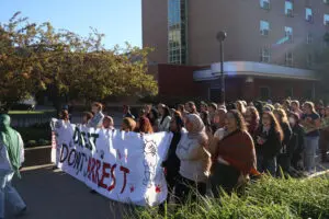 The WSU Police Department physically removed pro-divestment student protesters from the BOG meeting in April and the SJP hosted a pro-divestment encampment in May, during which WSUPD arrested 12 protesters.