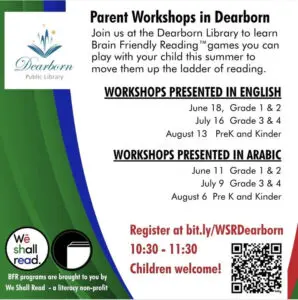 DEARBORN – We Shall Read, a non-profit organization aimed at improving children’s literacy, is partnering with the Dearborn Public Library to offer a series of free workshops for parents, in both English and Arabic.