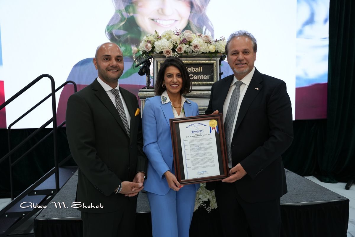 Wayne County Commissioner Sam Baydoun presented a certificate of recognition on behalf of the county, describing Bazzi as “a shining example of Arab American excellence and pride.”
