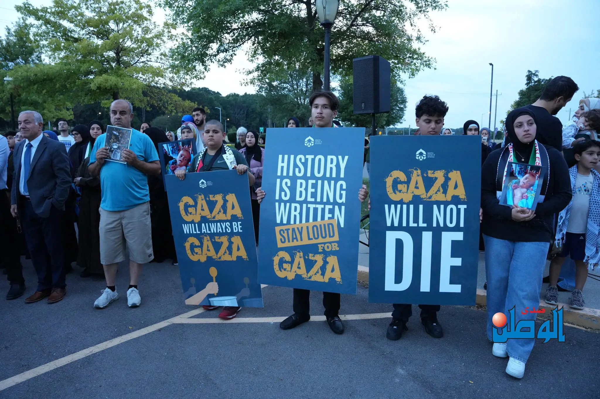 The imam of the Islamic Center of America, Sheikh Ahmad Hammoud, explained that the solidarity rally with Gaza’s children — during which Palestinian flags and banners were raised — was not a “political” event, but a “humanitarian statement” calling for the protection of human rights around the world, and particularly in Gaza.