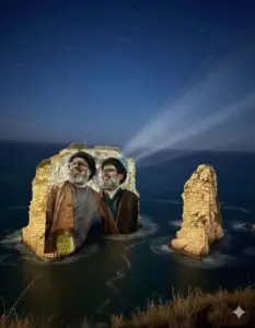 In Beirut, a giant image of Sayyed Hassan Nasrallah and Sayyed Hashem Safieddine was projected onto the iconic Raouche Rock, drawing political controversy.