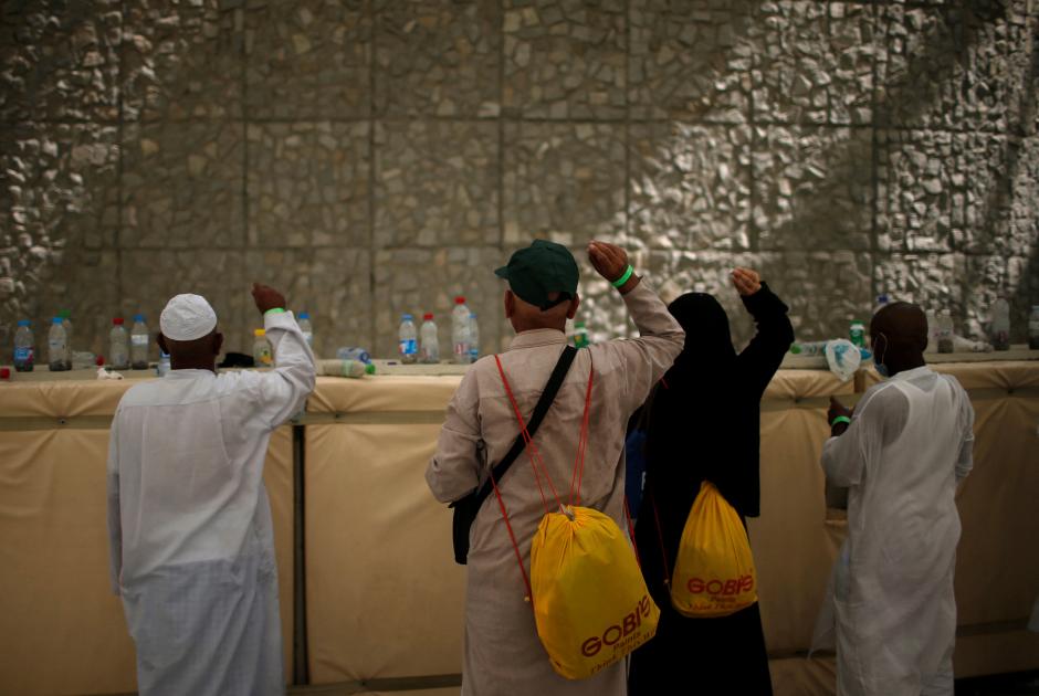 Muslim pilgrims cast stones at a pillar that symbolises Satan during the annual haj pilgrimage in Mena, Saudi Arabia September 3, 2017. REUTERS