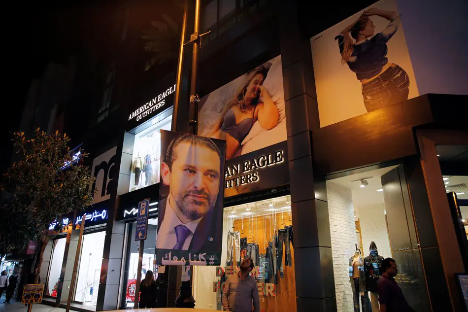 A poster depicting Saad al-Hariri is seen in Beirut, Lebanon this week. Hariri travelled to Riyadh on November 3 before abruptly resigning in a televised statement a day later. – Reuters