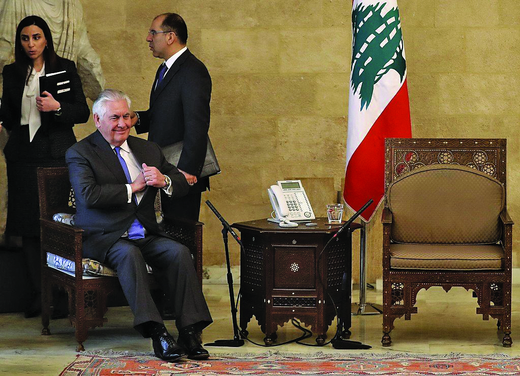 Tillerson urged Lebanese leaders to uphold the country’s commitment to staying out of regional conflicts.