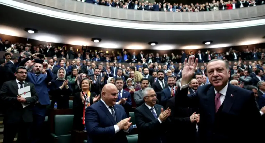 Erdogan addressing the Turkish Parliament.