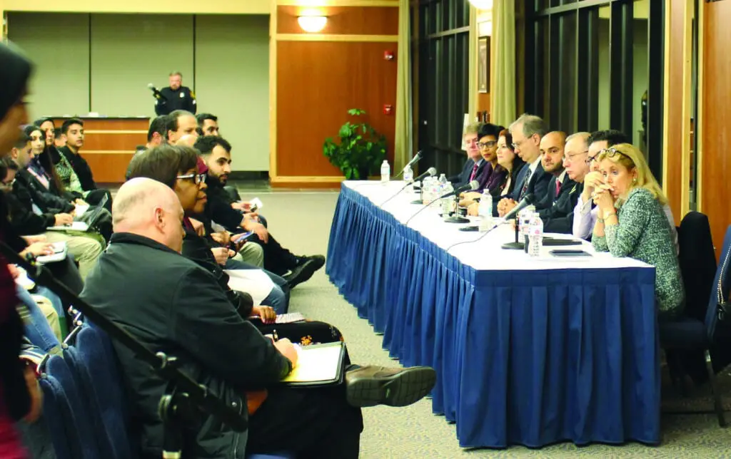 School administrators, mental health professionals, county officials, state and U.S. reps. participate in a forum at the University of Michigan-Dearborn’s Fairlane Center to address practices and procedures of Dearborn Public Schools during emergency situations