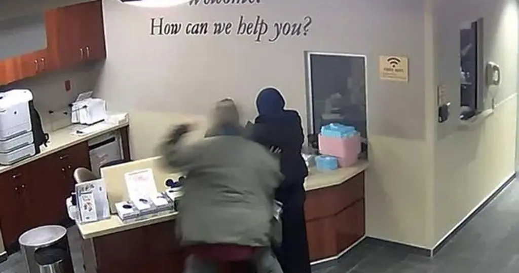 A few seconds later, she suffered three blows to the face.
