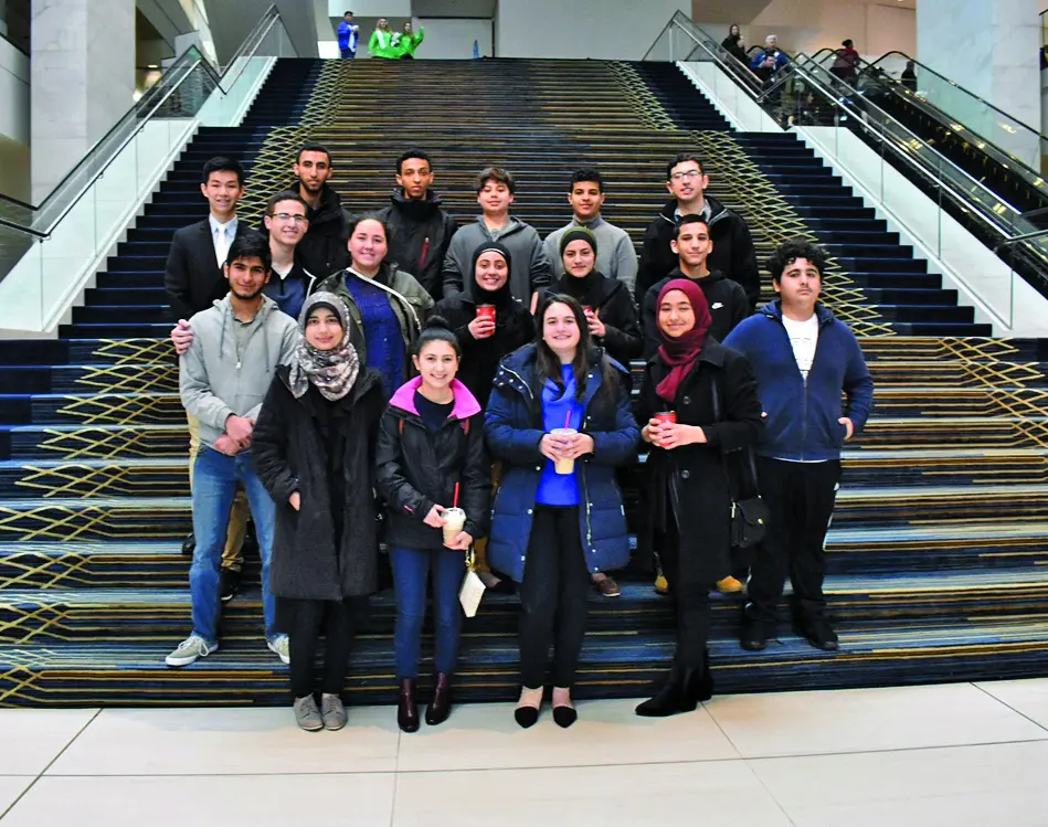 A group of youth from Fordson High School’s Arab Student Union at the steps of Cobo Hall – Photo courtesy of Hilal Bazzi